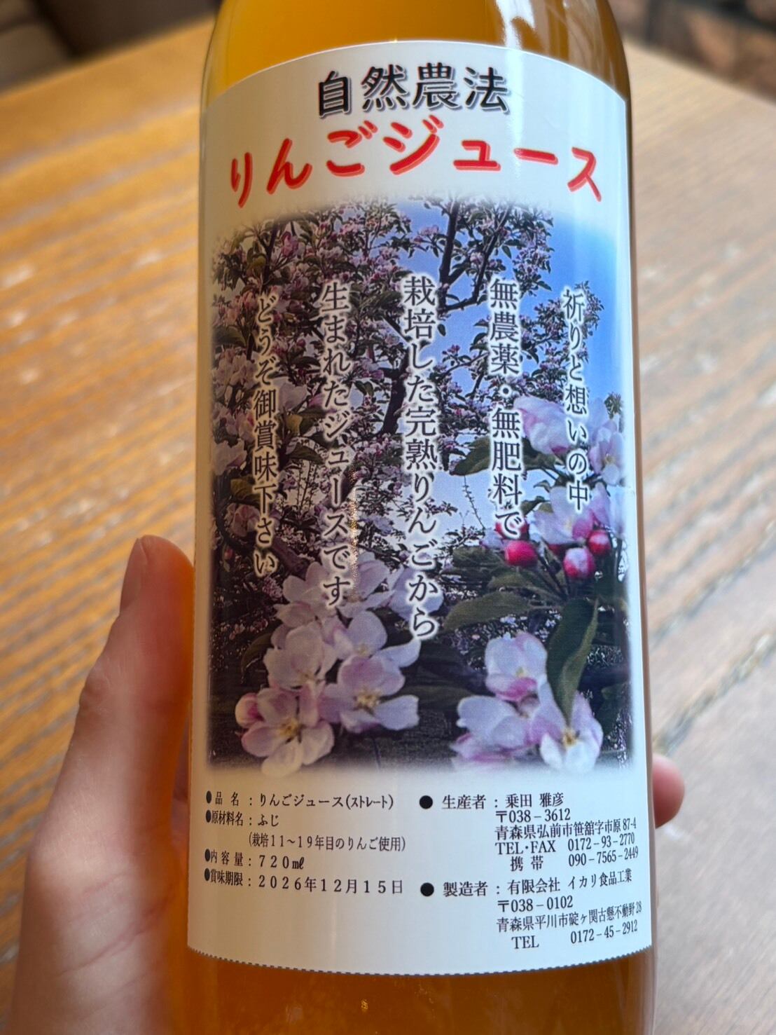 自然農法りんごジュース (大)720ml 1本 【青森県・乗田農園】